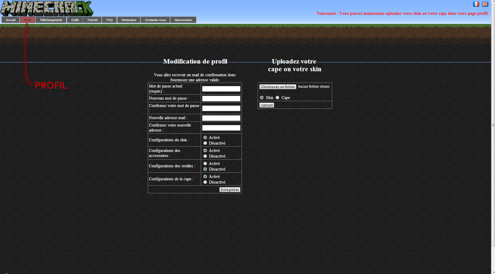 Rendez-vous sur la page profil, après vous être connectés à votre compte sur minecrack