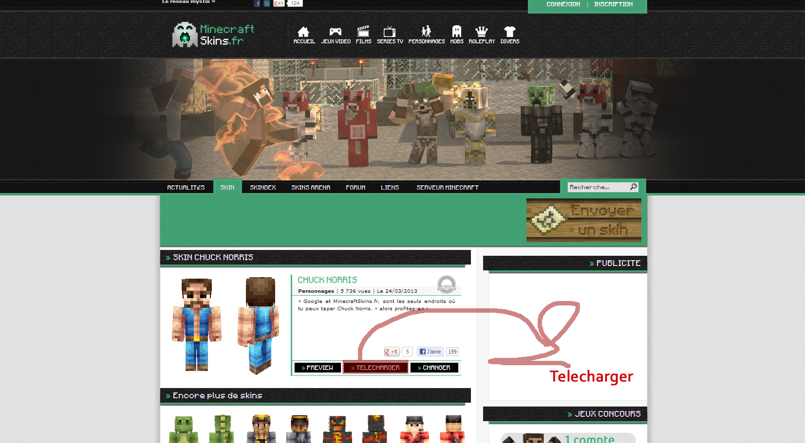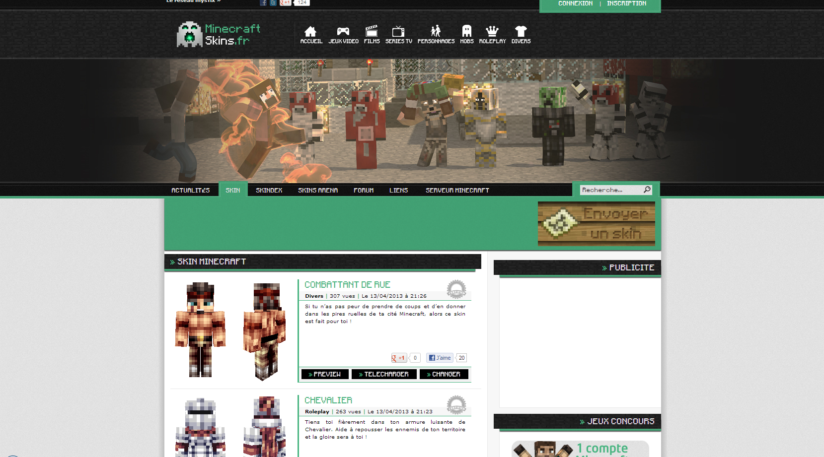 Plus qu'à vous rendre sur quelque site proposant des skins pour minecraft. Prenons l'exemple de