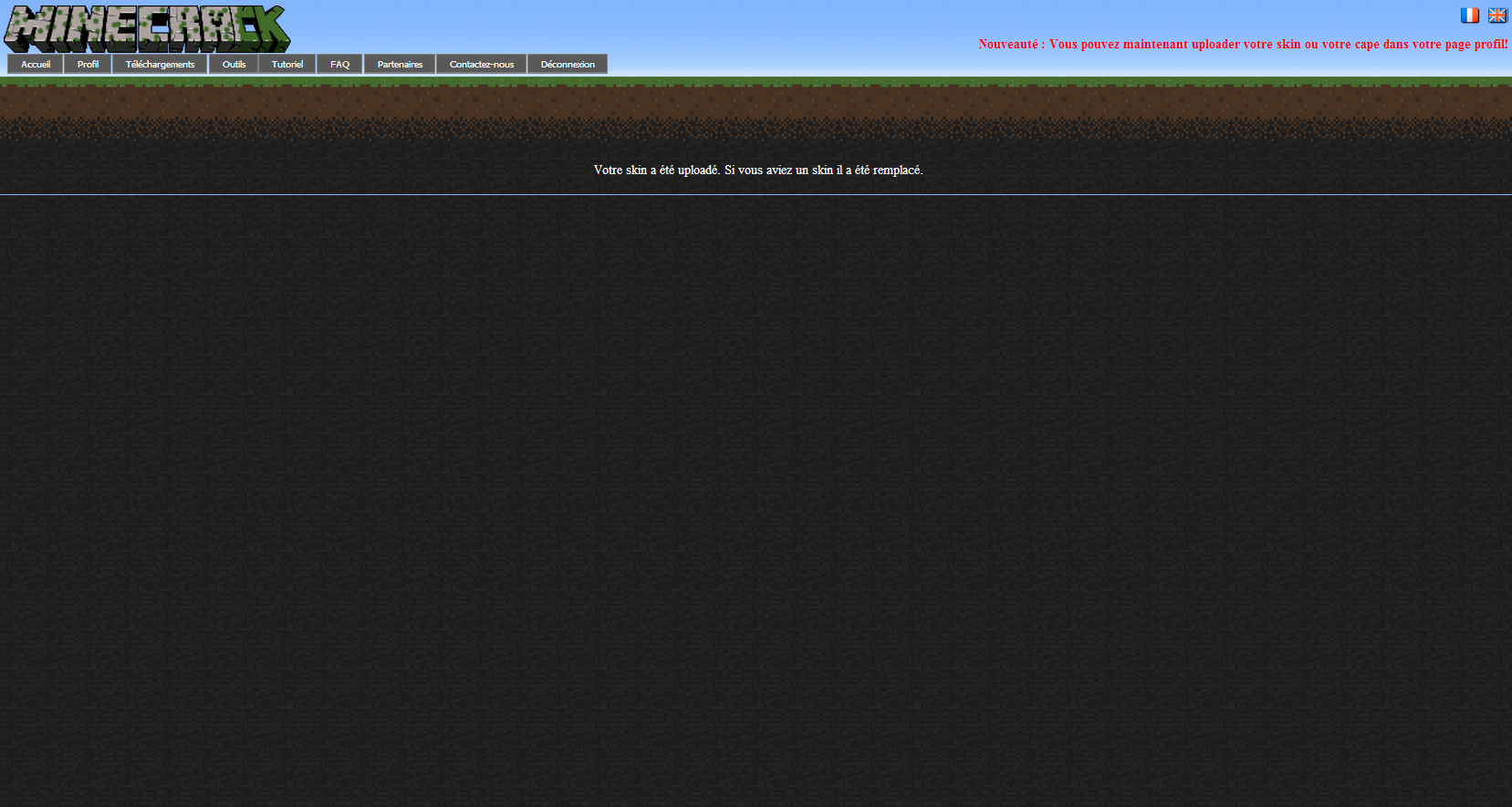 Puis ajouter le sur minecrack, en cliquant sur "choisissez un ficher", et en cochant skin si c'est un skin que vous souhaitez ajouter ou une cape si gnagnagna
