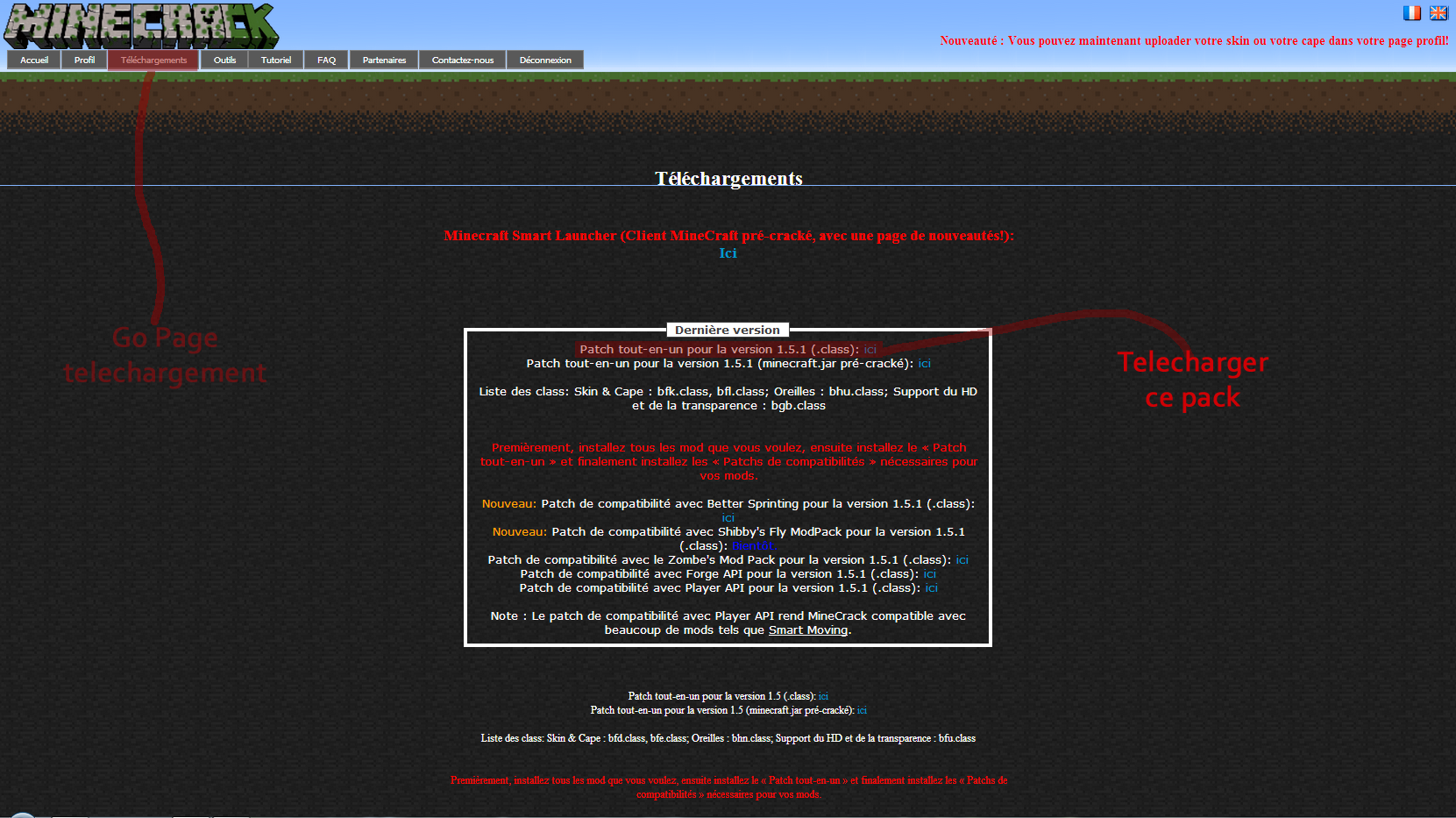 Sur la page de téléchargement, on choisi Patch tout-en-un pour la version 1.5.1